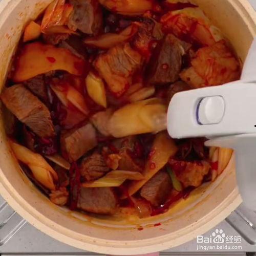 4. 加水炖煮:加入足够的水,大火烧开后转小火炖煮1小时左右,让牛肉充分吸收调料的味道。